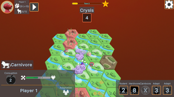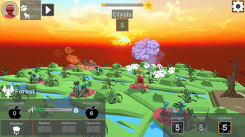 In this turn-based strategy game, you can create animals, change their type, and move them around the map. The goal is to create and maintain a particular population of predators.